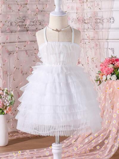 Multilayered Swing Dress With Cross Halter Neck Strap, Suitable For Spring Festival, Cute Wedding, Flower Girl Party, Formal Baptism And Baby Dress-52%