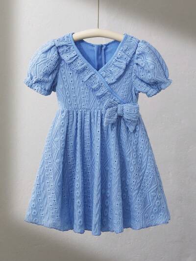 Baby Girl Elegant Bubble Sleeve Diagonal Placket Top With Split Hem Design Pants