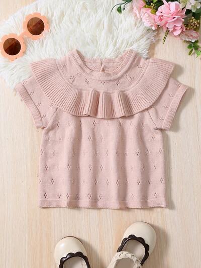 Baby Girl Knitted Top With Ruffled Shoulders And Flounced Hemline-50%