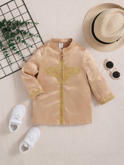 Baby Boy Style Traditional Pattern Stand Collar Long Sleeve Shirt-44%