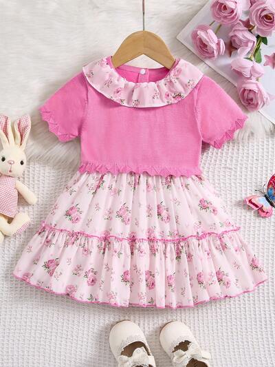 Vintage Floral Print Ruffled Hem Dress For Baby Girl-50%
