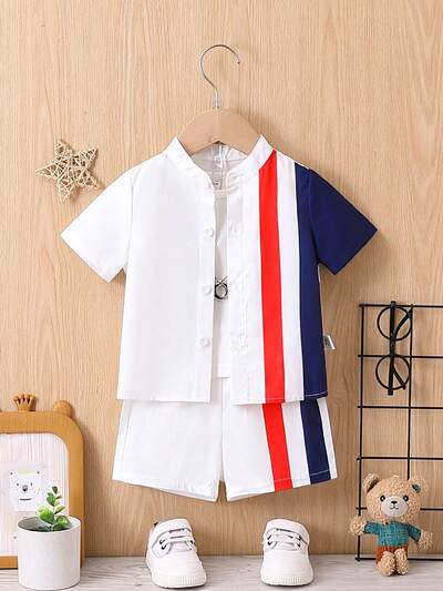 Baby Boy Infant Color Block Striped Shirt And Shorts Set-60%