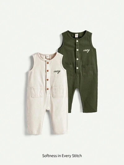 Baby Boys' Letter Printed Sleeveless Jumpsuit With Round Neckline-50%