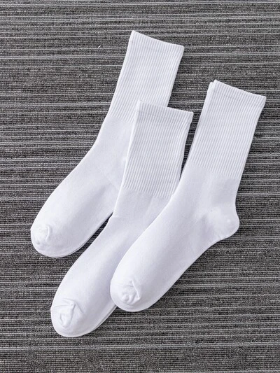 3 Pairs Men's Moisture-Wicking And High-Elastic Sports Socks, White Basic Unisex Athletic Socks With High Elasticity, Mid-Calf Length Suitable For Daily Workouts, Fall Socks-29%