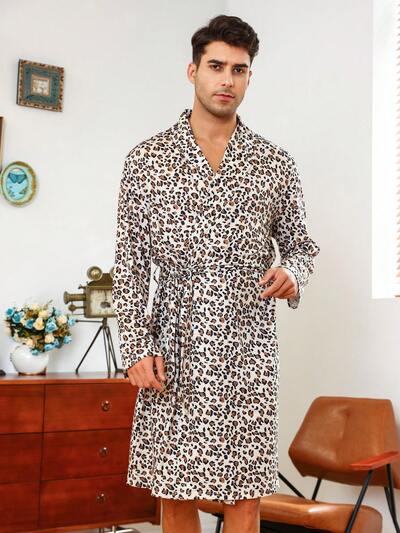 Men's Leopard Print Belted Robe