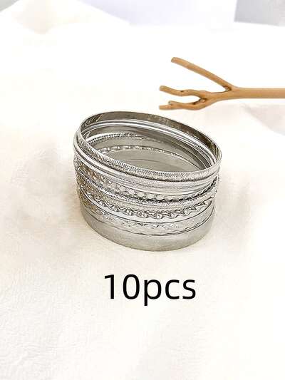 Set of 10 Boho Geometric Metal Bracelet