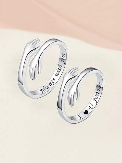 Approx. 30-180pcs Natural Black Agate, Matte KC Gold Plated Round Beads, Loose Beads For DIY Jewelry Making Accessories2pcs Couple Slogan Detail Hand Design Cuff Ring