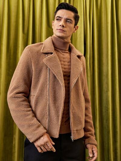 Men's Loose Fit Teddy Jacket With Zipper-60%