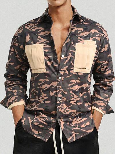 Men'S Camouflage Print Long Sleeve Shacket-60%