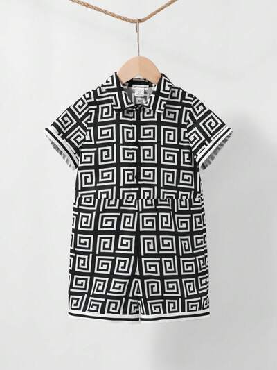 Young Boy Casual Collar Geometric Pattern Jumpsuit-45%