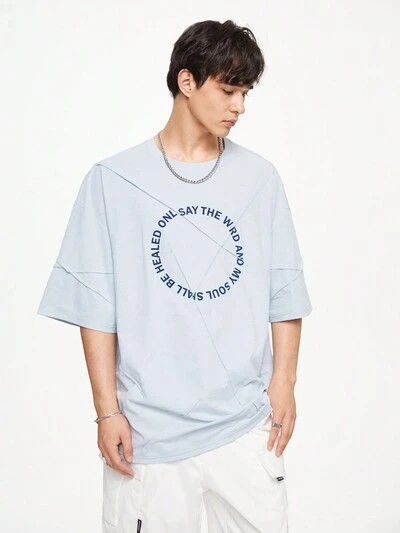 Loose-Fitting Men's Short Sleeve T-Shirt With Text Print Design-25%