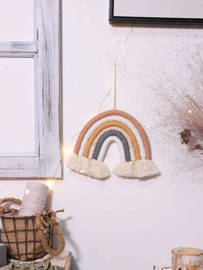 1pc Handmade Woven Rainbow Tapestry, Boho Style Macrame Wall Hanging Decor For Living Room, Bedroom, Multicolor Woven Wall Tapestry, Bohemian Style Home Decor (Lighting Not Included), Home Decor, Room Decor, Wall Decor Gift, Birthday Graduation Gift