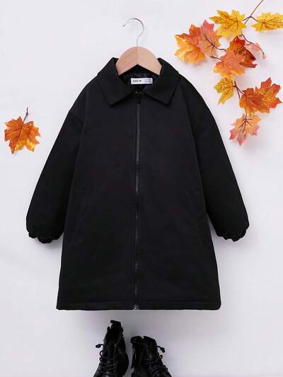 Girls Letter Floral Graphic Zip Up Slant Pocket Drop Shoulder Coat-60%
