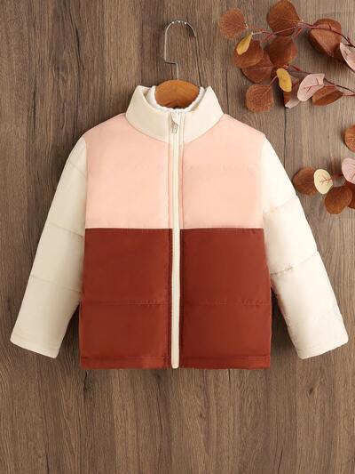 Young Boy Colorblock Zip Up Padded Coat-60%
