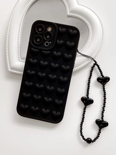 Solid Color Heart Shaped Phone Case With Strap Compatible With Apple