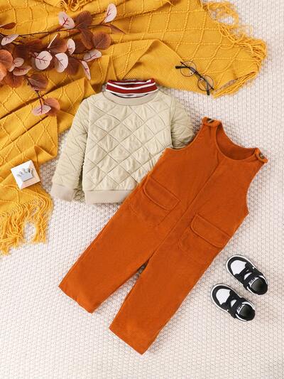 Baby Boys' Striped High-neck Long Sleeve Top And Casual Suspender Pants Set-65%