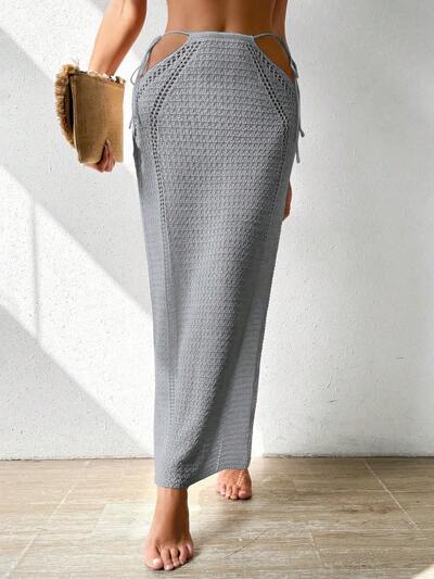 Summer Women's Solid Color Bandeau See-Through Knot Sleeveless Cover Up Dress-32%