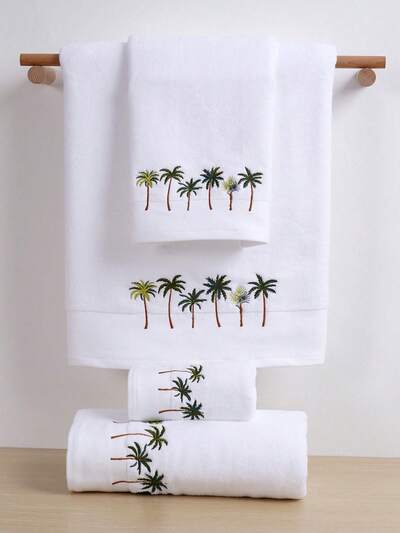 QIBHI 3/1pc(S) Premium Cotton Terry Embroidered Bath Towel Or Hand Towel, Absorbent For Home, Bathroom, Hotel, Gym, Travel, Gift, Salon, Sports, Outdoor, Beach, School, Back To School, Travel Accessories, Home Essentials, Towel, Skincare - Coconut Tree, Sunflower Field Rustic Style