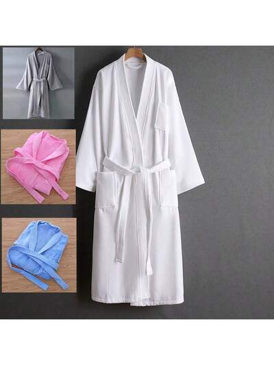 1pc Terry Velour Plain Collar Robe, Bathrobe, Loungewear, Home Wear, Soft, Absorbent, For Bathroom, Bedroom, Swimming Pool Back To School