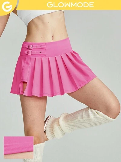 Pleated Low-Rise Buckled Mini Skirt Quick Dry Moisture Wicking