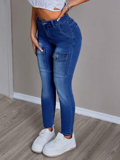 Women's Workwear Pocketed Casual Travel Denim Pants-25%