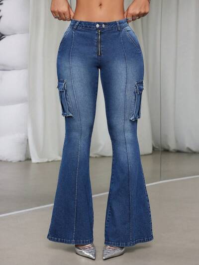 Ladies' Cargo Style Denim Jeans With Pockets-65%