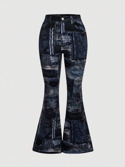 Women's Low Waist Tie Dye Washed Flared Jeans-60%