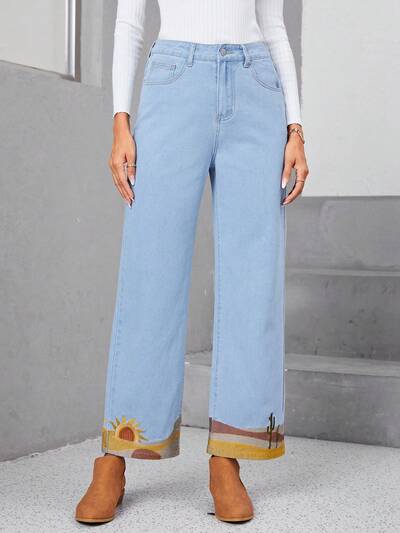 Sun Print Wide Leg Jeans-65%