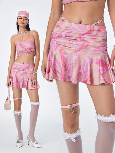 Artist Girlcore Casual Bodycon Bandage Mini Skirt With Print Design For Women, Holiday, Party, Festival, Western Wear
