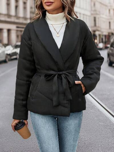 Shawl Collar Padded Padded Coat Clothes Winter With Diagonal Pockets And Waist Belt Fall Cloth For Women-26%