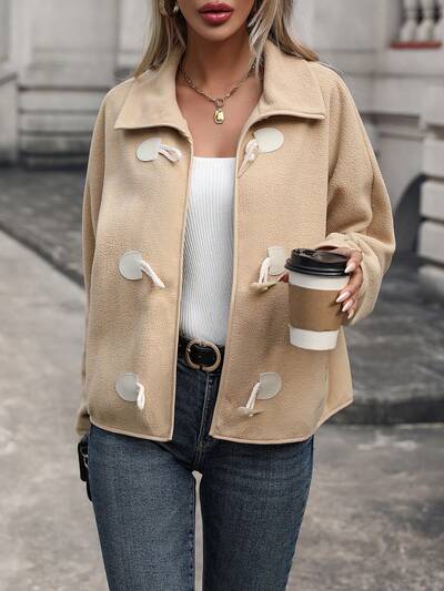 Duffle Button Slant Pocket Teddy Jacket Fall Cloth For Women-60%