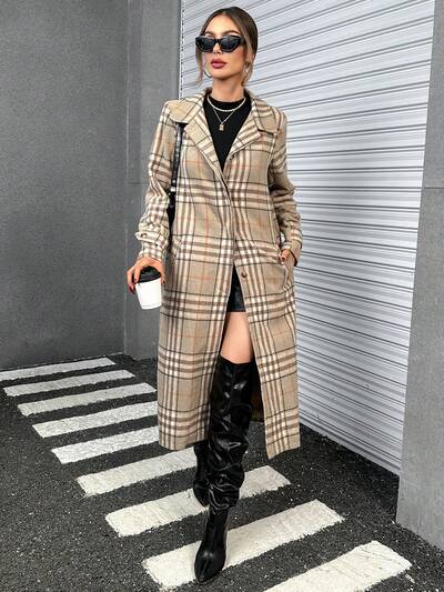 Plaid Print Double Button Overcoat