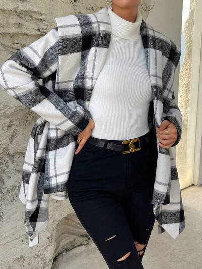 Checkerboard Plaid Open Front Coat-65%