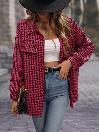 Houndstooth Print Drop Shoulder Coat Fall Cloth For Women-60%