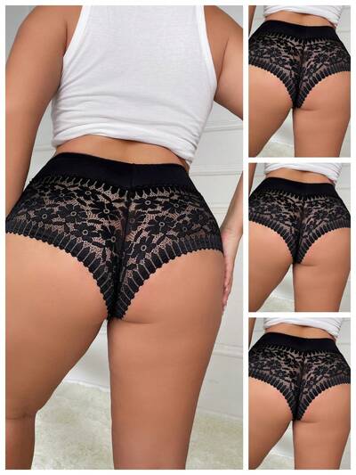 Plus Size Lace Embroidered Underwear, 1pc/Pack