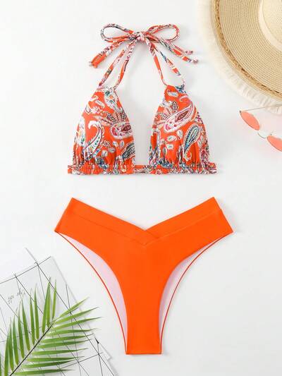 Women's Summer Beach Paisley Print Halter Neck Bikini Set Bathing Suit-41%