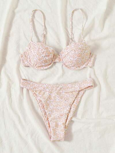 Women's Ditsy Floral Bikini Set With Underwire Support And Spaghetti Straps, Two Pieces Bikini Set Bathing Suit Beach Outfit Summer Vacation Summer Beach