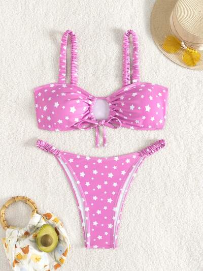 Star Printed Bikini Set, String Bikini Swimwear Bathing Suit Beach Outfit Summer Vacation-32%