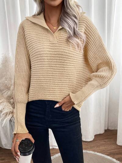 Batwing Sleeve Ribbed Knit Pullover Fall Winter Sweater-60%