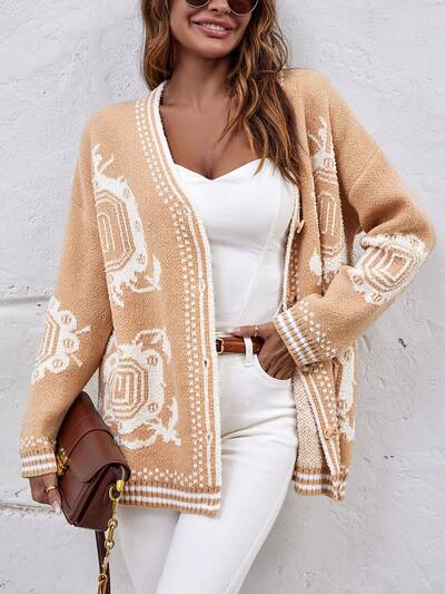 Graphic Pattern Drop Shoulder Cardigan Fall Cloth For Women-60%