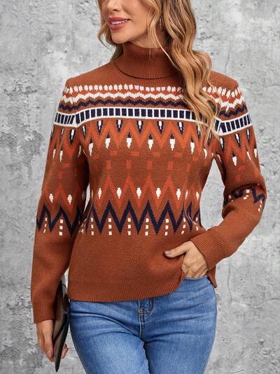 Geo Pattern Turtleneck Sweater-60%