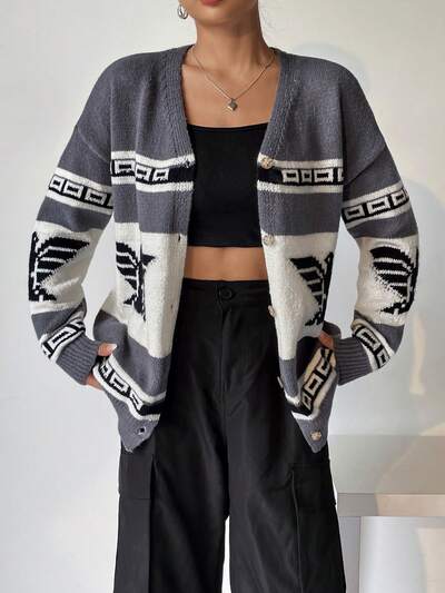 Letter Pattern Drop Shoulder Cardigan Fall Cloth For Women-65%