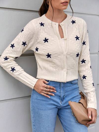 Star Pattern Button Front Cardigan Fall Cloth For Women-60%