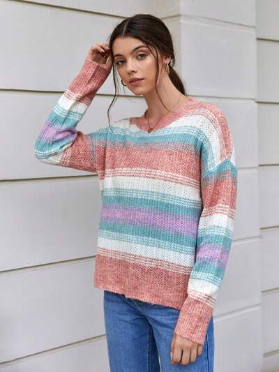 Color Block Drop Shoulder Knit Pullover Fall Winter Sweater-60%