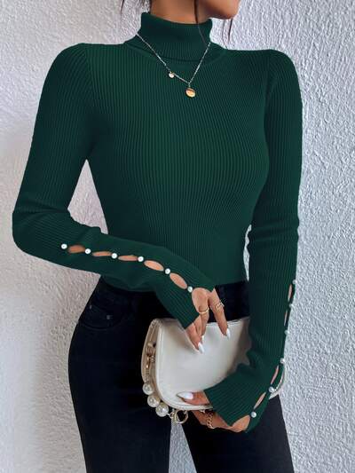 Turtleneck Button Detail Knit Pullover Fall Winter Sweater-35%