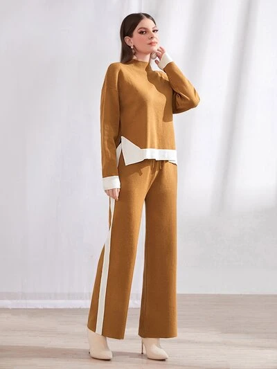 Drop Shoulder Sweater & Knit Pants 2 Piece Set Fall Cloth For Women-35%