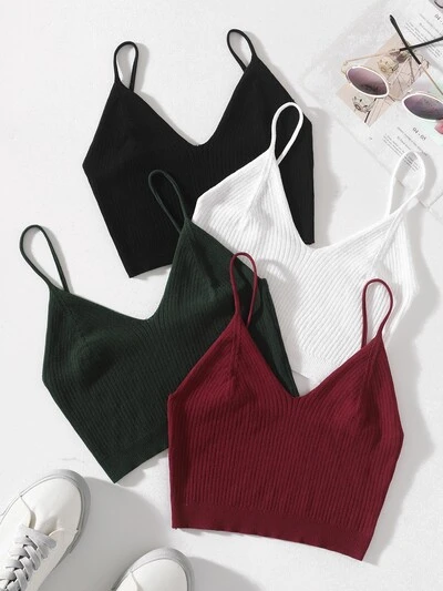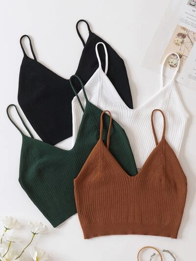 4pcs Solid Crop Knit Top-34%