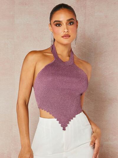 Solid Backless Halter Knit Top-60%
