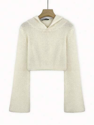 Solid Crop Hooded Knit Pullover Fall Winter Sweater-65%