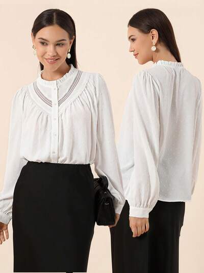 Women'S Ruffle Hem Shirt With Collar